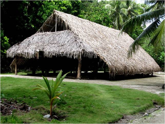 of custom design. It is called a foeng in the local language.This may be the last one of traditional construction and it is an impressive structure. Town meetings are also held here and women are allowed/invited inside. |