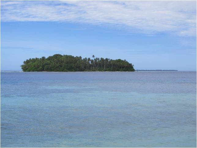 Charted as Lukunor, is in the Mortlock Group of islands of Chuuk State. This is its wide pass. |