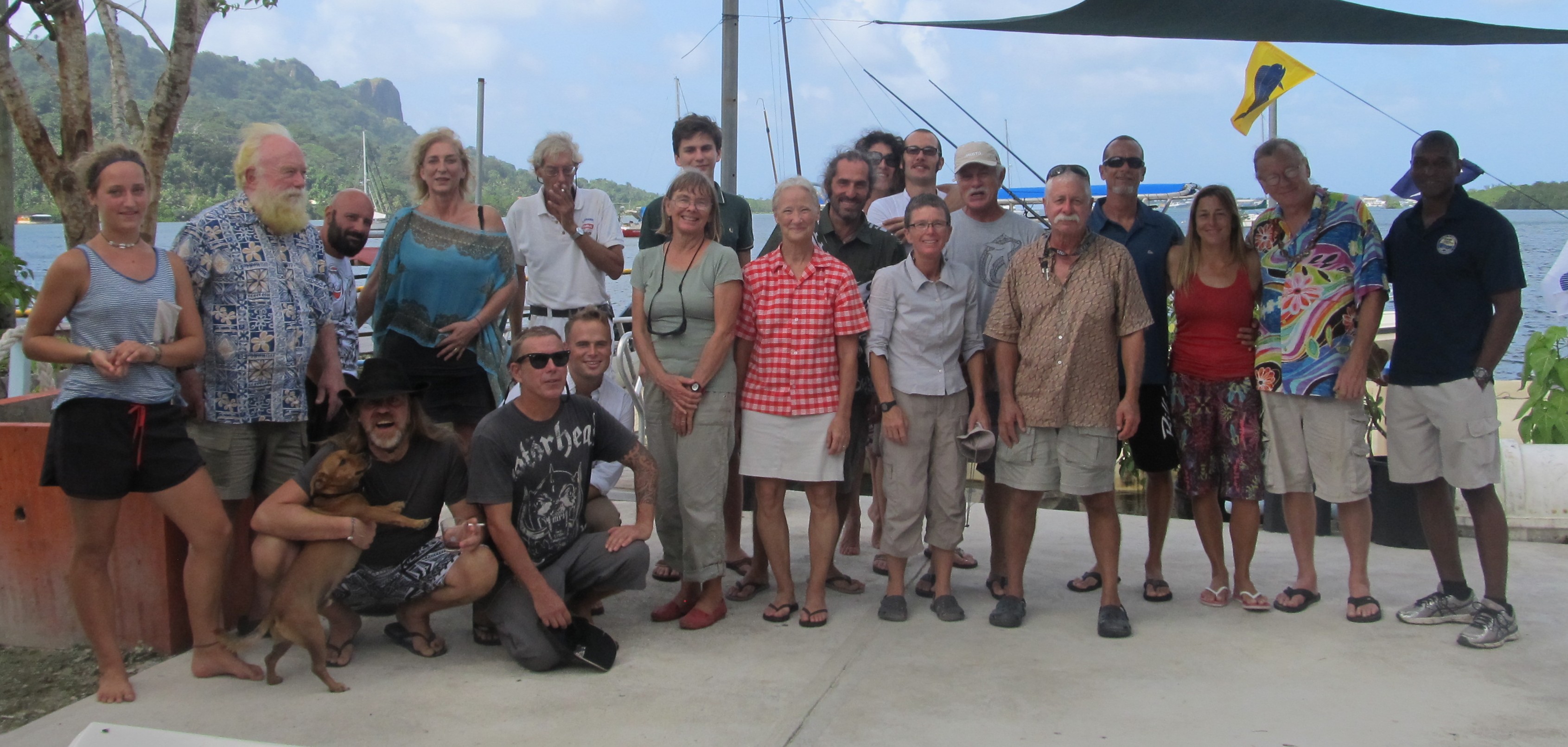 and international Christmas crowd gathered for a potluck ashore at Mangrove Bay |
