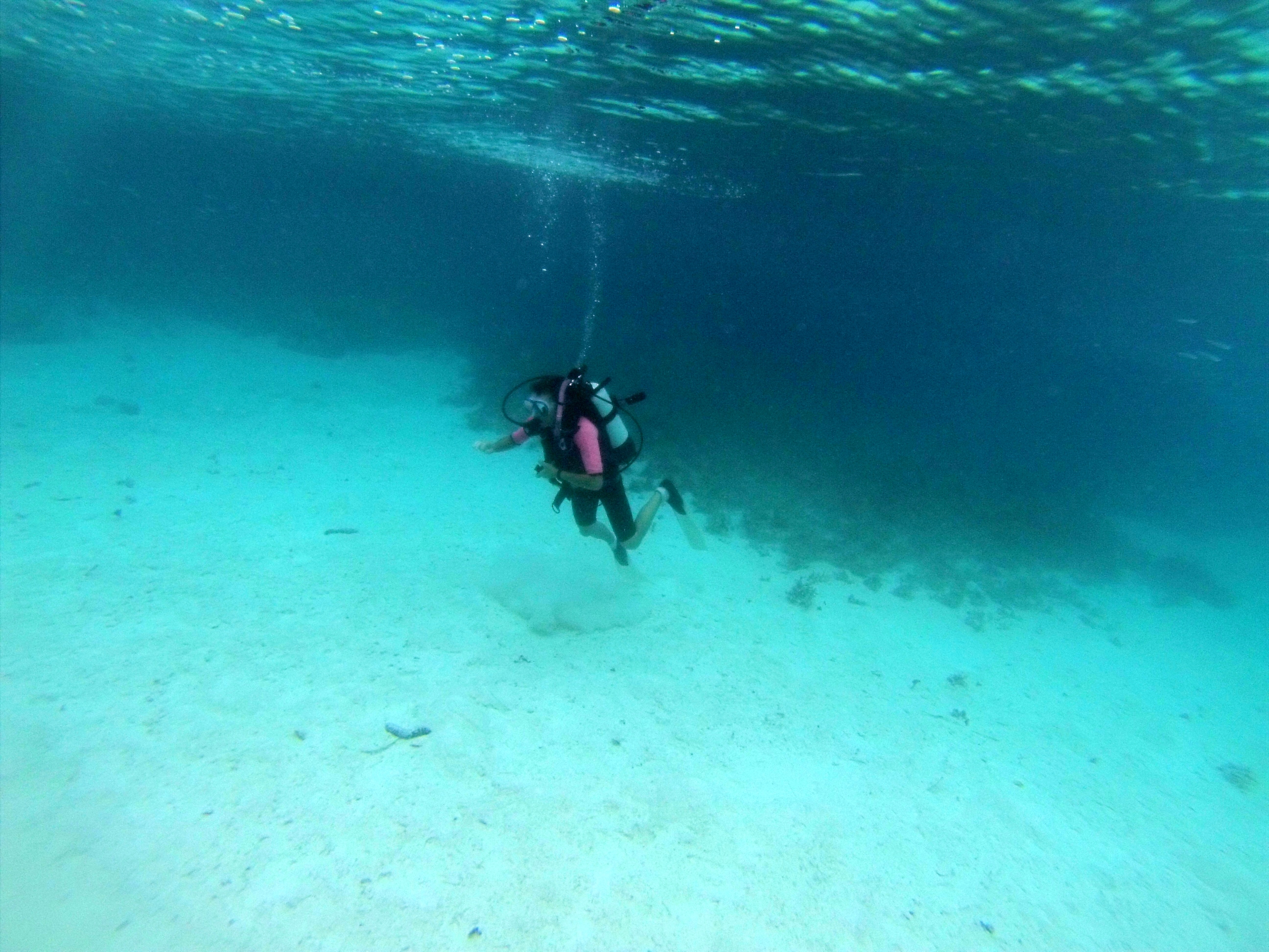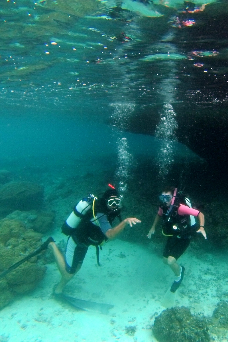 Glen was kind enough to give Leslie an introductory diving lesson one day. She loved it! |