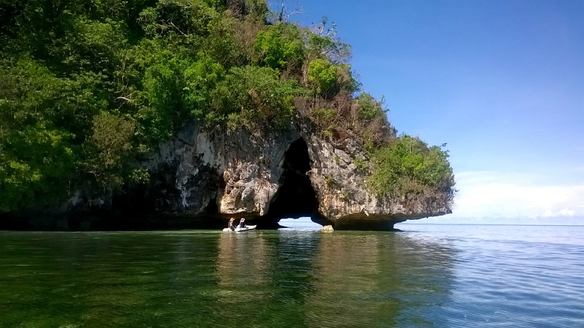 from our mooring, so technically not "in" the Rock Islands was a popular dive site - Chandelier Cave. It's entrance was creepy enough for us...we ventured no further. |