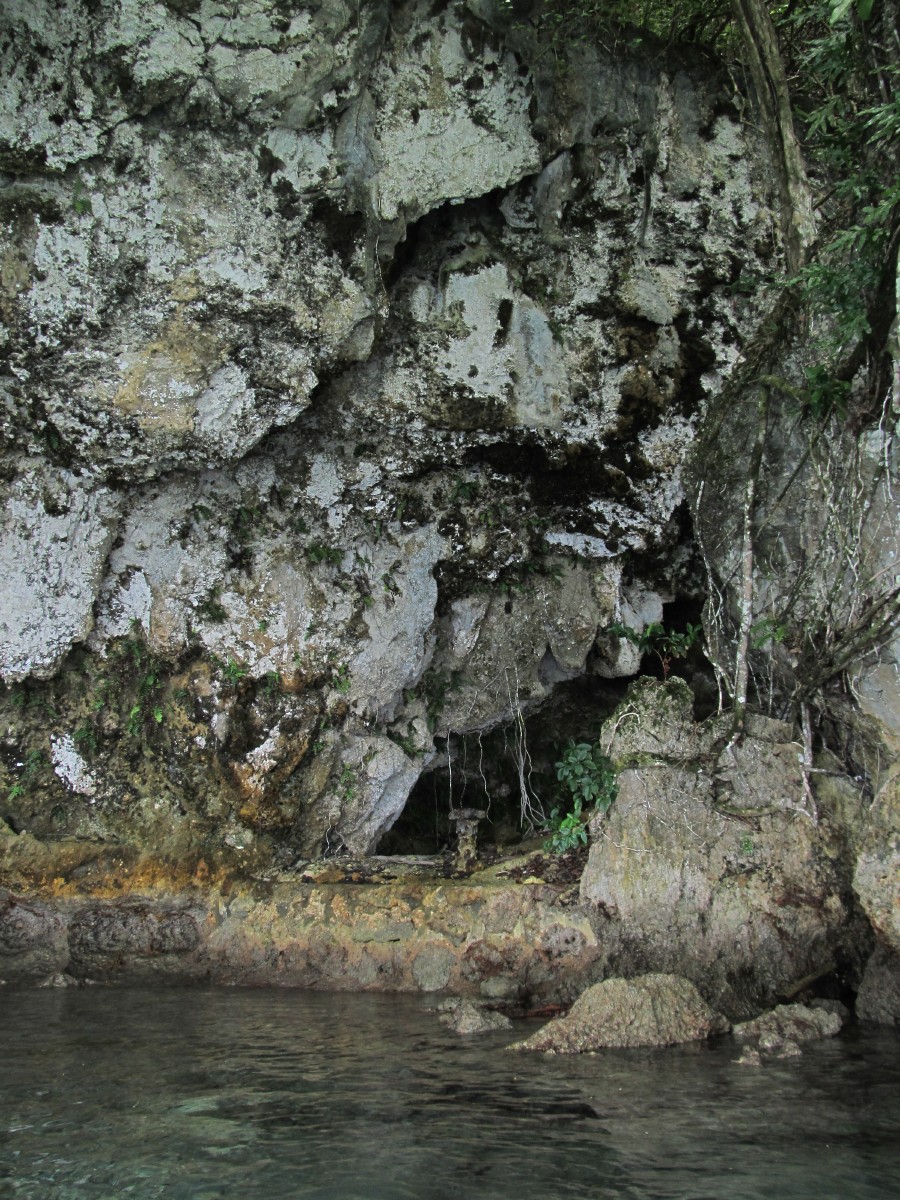 the channel is a cave with two WWII Japanese gun installations. These commanded a defence from forces approaching from the east or north. |