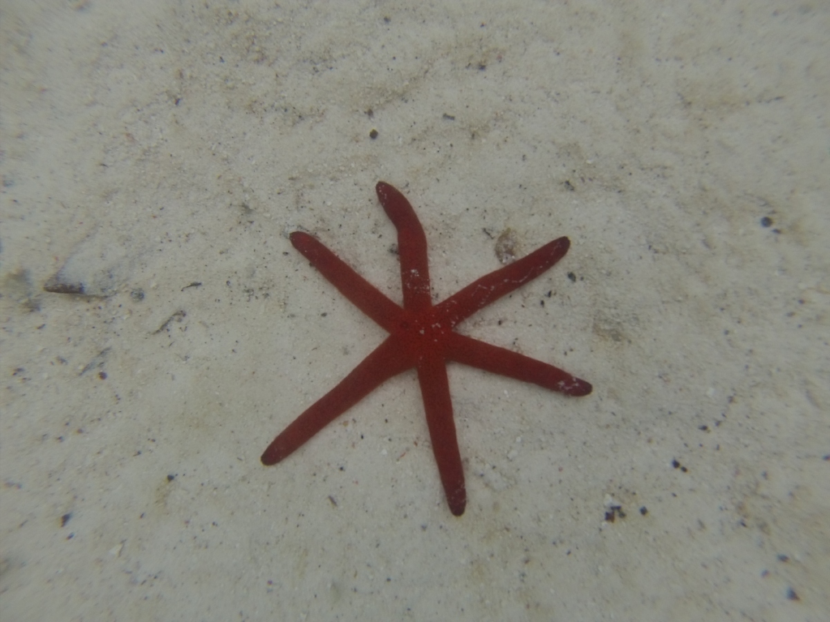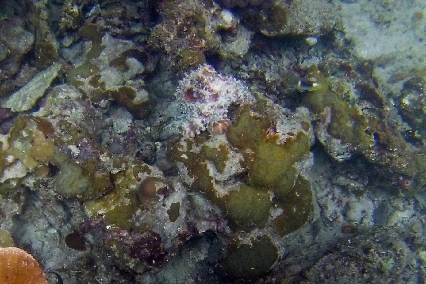where dinghies and dive boats park, there is a shallow channel leading to the lake. It is here that we saw this deadly creature - a stonefish. A sting can be fatal. |