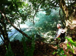 As we reached the eastern ocean side of the island and Philip began to search for footholds down to the water, Leslie looked east to see a croc - bigger than Philip - racing along the shore below and towards us. She screeched a whole string of words and the croc flipped its mighty tail and changed course and went to sea. Whew. A scary encounter. |