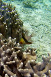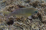 fish seemed scarce except various spp. of damselfish. This little beauty is likely a "staghorn" damselfish. |