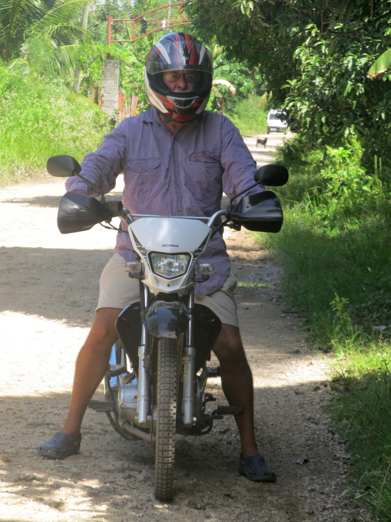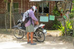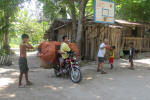 we ventured out with David and Suzi of Sidewinder and found Hagnaya in Adecor on the west coast of Samal. We spent an hour or so here, sharing watermelon, playing basketball and looking out at Davao City. This interesting delivery bike drove through and we just had to get a photo. |