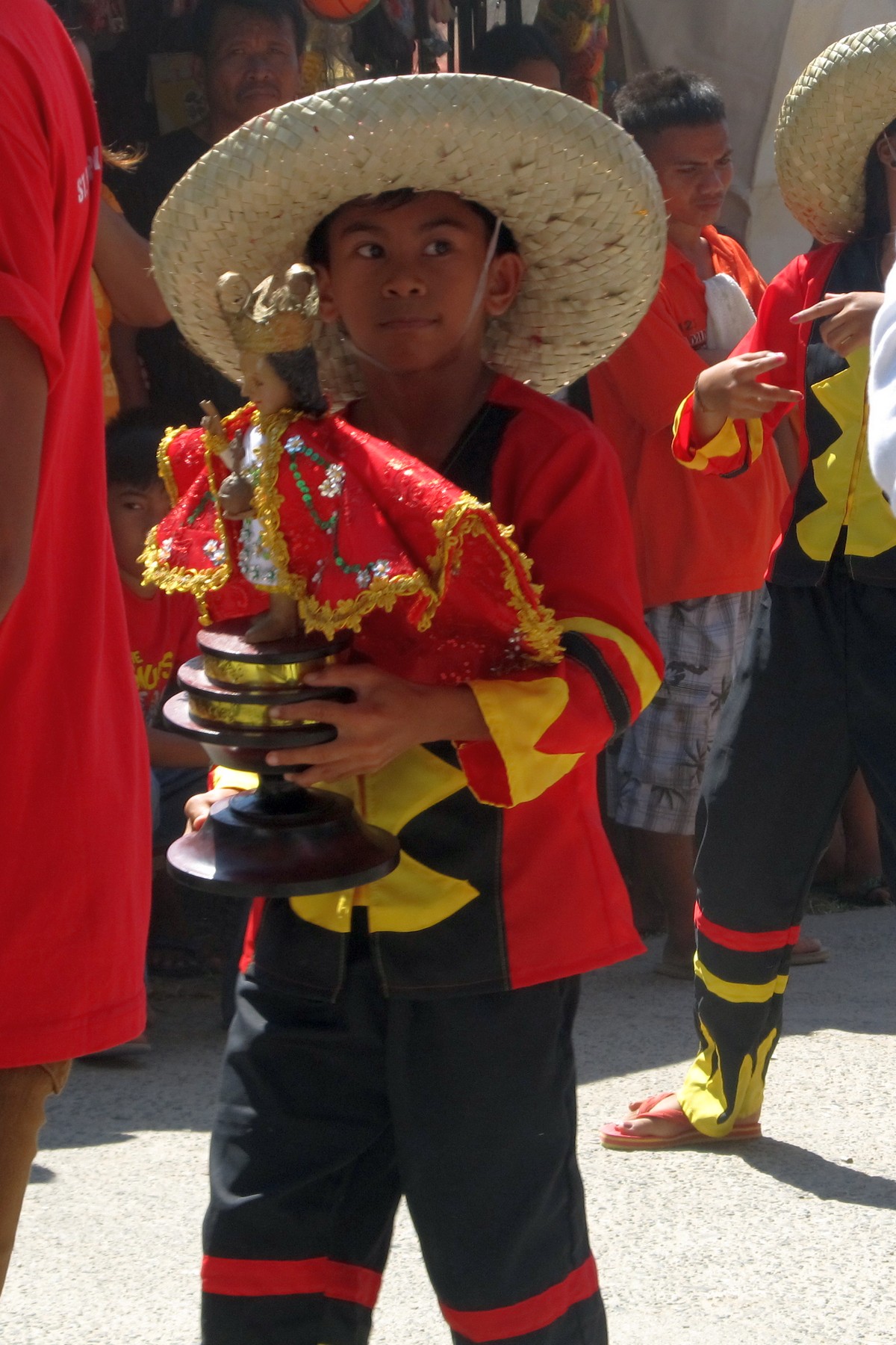 young lad carries an effigy. |