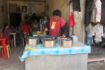 we visited the local market there for our supper. These guys are sitting in the "no vendors" zone but don't seem the least bit worried. |