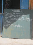 intrigued us, so we asked. Dole (you know, the multinational fruit company) owns the public market at Pena Plata. A meeting is being held to organize vendors. Note the last line item. We didn't understand and asked again...a laraylaray (get it, laray x2?) is a tiny booth in the local language. |