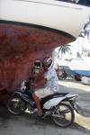 boatyard. Notice we climb aboard on a bamboo ladder. |