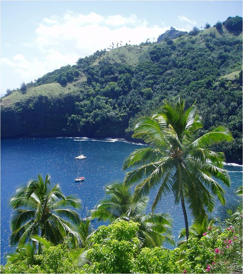 The village of Hapatoni sits on a bay of the same name but the anchoring is not good; we anchored with a few other sailboats in Tefau, the bay to the north. |
