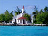 Though there are few island residents, the circa 1860 church of coral has not been abandoned. |