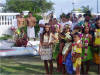 The opening ceremony followed a parade which included a queen and a princess carried in pirogues - a modern version of traditional outrigger canoes. |