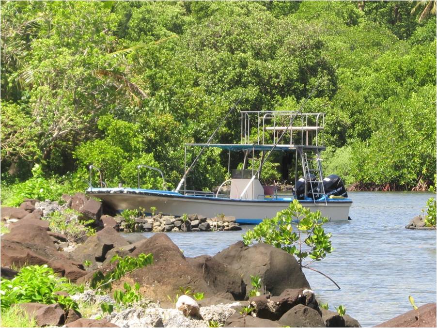 Pasa Island (motu) is the site of a small tourist cabin, infrequently occupied. We were anchored about a mile south. |