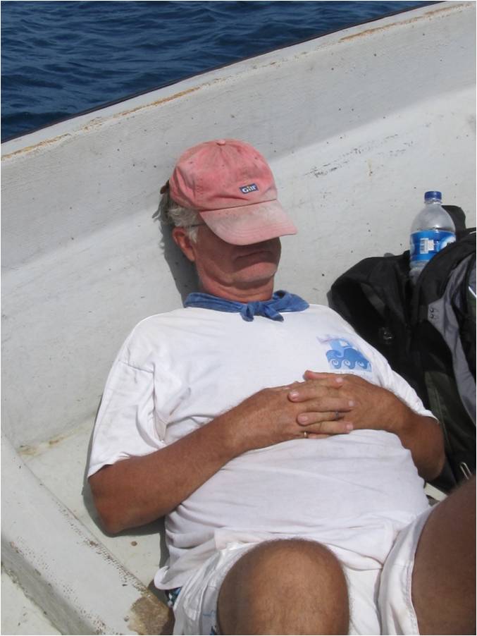 Kelly (shown) and his crew Glen departed Pohnpei during typhoon season, confident the fate of Kelly's last boat wouldn't haunt them. Instead a typhoon caught them at Woleai and they were shipwrecked. |