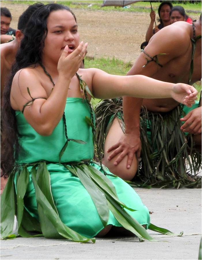 students pulled out all the stops for their traditional Pohnpeian dance set to the percussion of dokia sticks. |