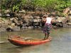 in Palikir is reached by crossing a river on a styrofoam float. It is a lovely spot with views of Pohnpei's tallest mountain. |