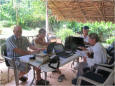 JH3QFL and JH3ACZ visited Pohnpei. They set up an impressive set of four amateur radio antennas on the lawn of the South Park Hotel. Friend Lance from Montana hoped to reach them here in Pohnpei. |