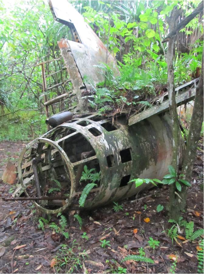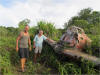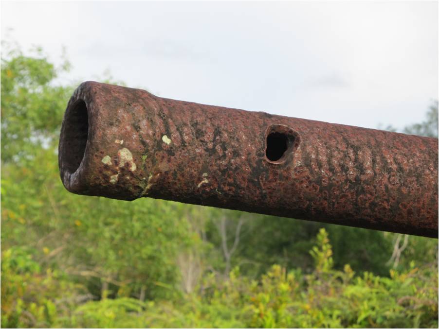 was a strategic site during WWII. This Japanese anti-aircraft gun was near the old airport. Glen and Philip were checking to see if there was a shell inside. There wasn't. |
