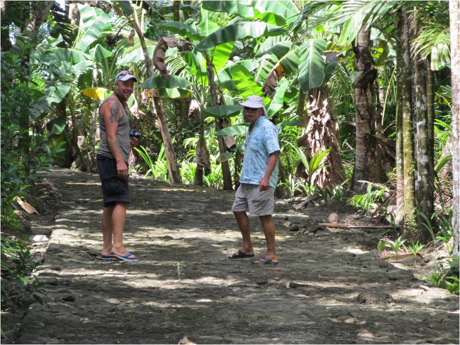 During a long day of exploring, we came upon this stone path that led to the sea and to a men's house. |